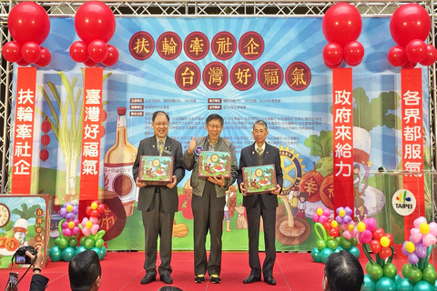 「扶輪牽社企_台灣好福氣」市長與3481、3482總監共同推廣以採購代替捐贈。(臺北市政府產業發展局提供)