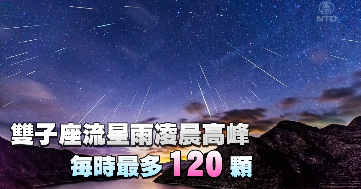 【新唐人亞太台 2017 年 12 月 13 日訊】年度三大流星雨之一,雙子座流星雨明天(12月14日)凌晨2點半前後將達到最高峰,每小時可達100~120顆左右,台灣最適合觀察的時段,就在今、明14日兩天午夜前後,只要選擇無光害、視野開闊的空曠郊區,用肉眼就能盡情觀賞這場今年壓軸的絢麗流星雨。