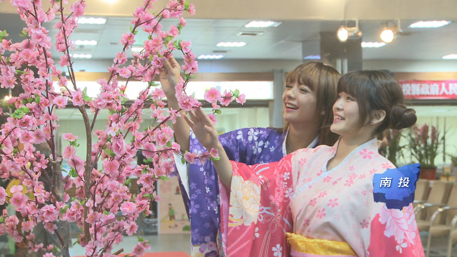 和服正妹:「南投花卉嘉年華,花卉很漂亮,歡迎您來玩。」