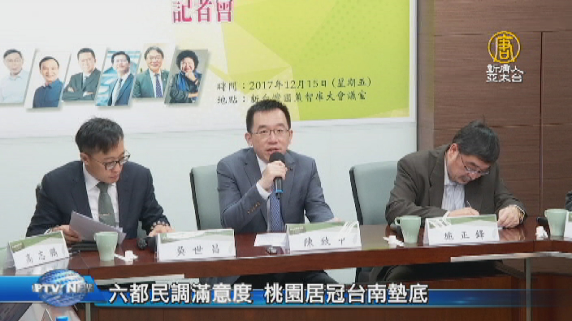 【新唐人亞太台 2017 年 12 月 15 日訊】新台灣國策智庫今天(15)發佈六都市長施政滿意度民調,桃園市長鄭文燦滿意度居冠,其次分別是高雄市長陳菊、台中市長林佳龍、台北市長柯文哲與新北市長朱立倫,而台南市代理市長李孟諺滿意度則是墊底。