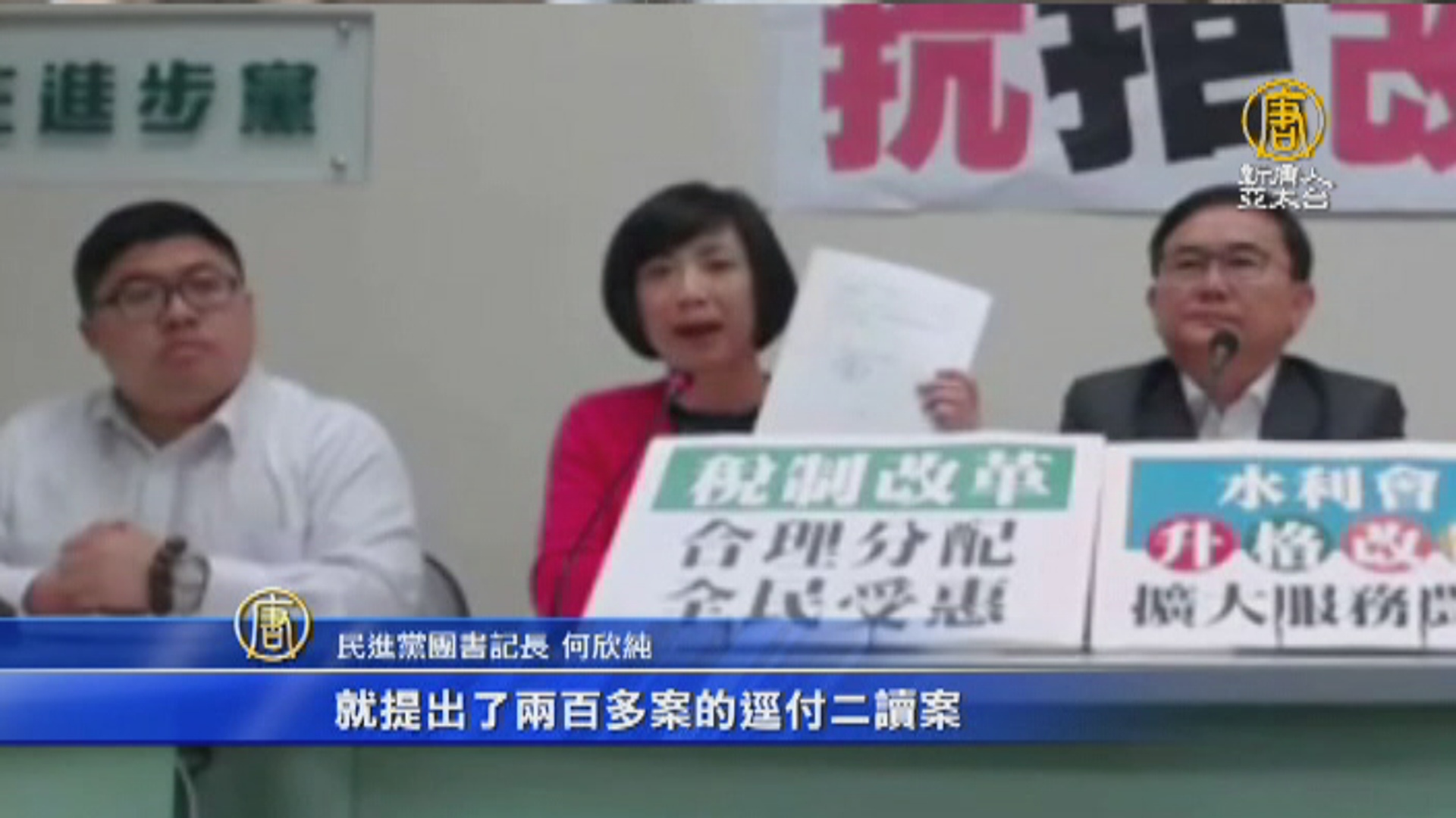 【新唐人亞太台 2017 年 12 月 15 日訊】好,繼續來看到,今天另一個在立法院被逕付二讀的法案,就是所得稅法修正草案,民進黨團提案,直接逕付二讀,同樣以人數優勢表決通過,引發在野立委不滿,質疑法案刻意向富人傾斜,不過,民進黨團則認為,這合乎議事運作。