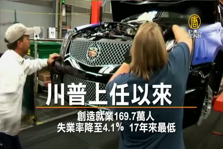 企業擴大投資,帶動了就業市場擴張。根據美國勞工部統計,川普上任以來,累計創造的就業人數,達到169.7萬人。失業率下降到4.1%,創17年來新低。
