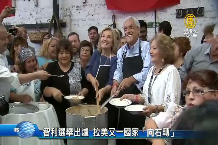 【新唐人亞太台 2017 年 12 月 18 日訊】再來看到,智利星期天舉行總統大選第二輪決選,身為億萬富商的保守派前總統皮涅拉,取得超過5成選票,壓倒中間偏左的前記者吉耶。68歲的皮涅拉是全球最大銅礦生產商,2010年到2014年曾擔任總統,也是首位保守派總統。他主打過去擔任總統時每年經濟成長逾5%的政績,承諾要拉抬當前萎靡不振的經濟,十年前,阿根廷、巴西等多個拉美國家都由左派領導人治理,不過近年,都由保守派重新執政。