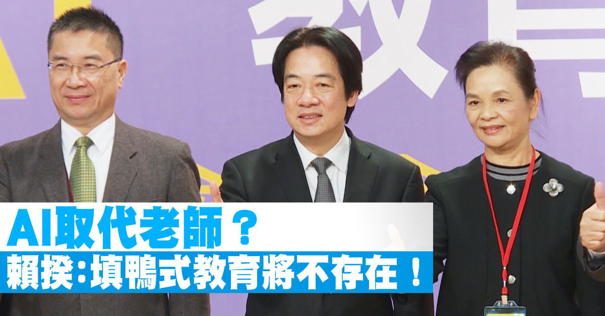 行政院長 賴清德:「機械式的教育,填鴨式的教育,孩子啊,再會記,你也不可能比人工智慧記得多。如果老師只是在傳遞,他所知道的知識,這個老師恐怕沒多久,他也被取代。」