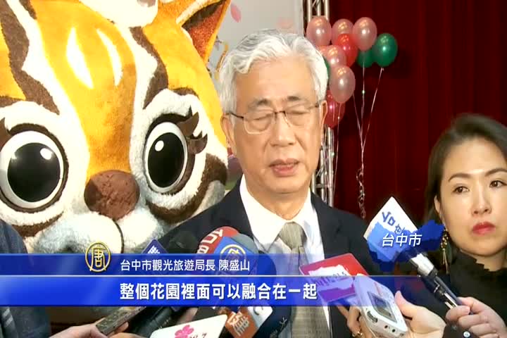 採用超過10萬株花卉組成,山櫻花外圍以百合、波斯菊、山櫻花等5種台中代表性的花卉為造型。