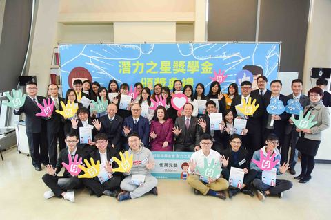 【新唐人亞太台 2017 年 12 月 20 日訊】富邦慈善基金會長期協助經濟弱勢的中小學生順利就學,更透過「潛力之星獎學金計畫」延續助學的力量,今(20)日舉行「潛力之星獎學金」頒獎典禮,由富邦慈善基金會執行長蔡明純、富邦金控總經理韓蔚廷和富邦產險總經理陳伯燿共同頒獎,共有40名學生獲獎,除了每人獲頒5萬元獎學金,未來也將依個人意願,提供富邦金控暨各子公司的實習機會。