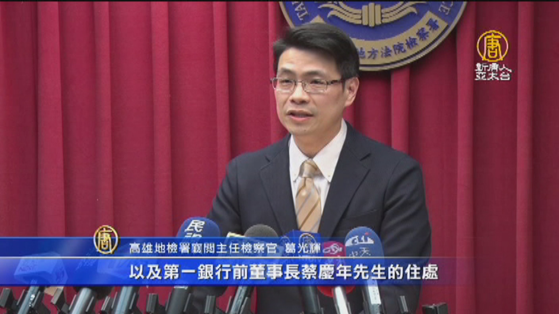高雄地檢署襄閱主任檢察官 葛光輝:「本署檢察官為了釐清慶富造船公司取得第一銀行聯貸案是否涉有不法一案,在民國106年12月21日上午,由檢察官親自帶隊指揮本署蒐證組檢察事務官、法務部調查局南部機動工作站、北部機動工作站、高雄市調查處等單位,來同步的搜索第一銀行總行、第一銀行高雄分行以及第一銀行前董事長蔡慶年先生的住處。」