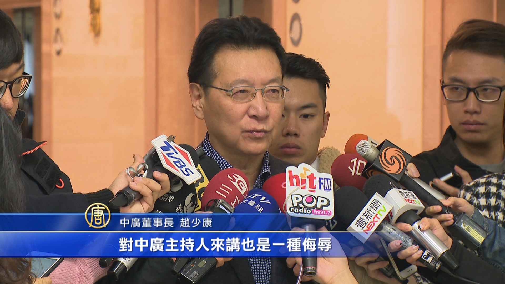 中廣董事長 趙少康:「說中廣是國民黨的附隨組織,對我個人而言是一種侮辱,對中廣而言是一種侮辱,對中廣的員工來講是侮辱,對中廣主持人來講也是一種侮辱」。