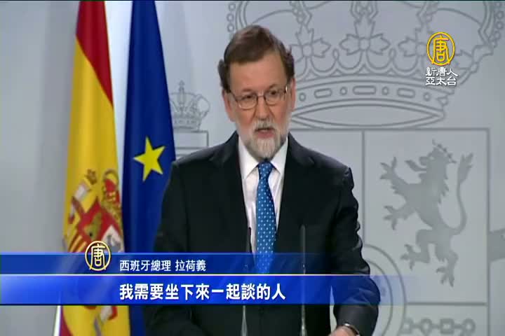 2017-10-19 21:42:19早安新唐人,先來關心,西班牙加泰隆尼亞自治區的獨立風波。,中央政府已經喊出,要暫停加泰隆尼亞自治權,並給對方24小時的決定期限。但自治區政府說,如果西班牙政府收回自治權,他們將正式宣布脫離西班牙。面對西班牙數十年來最嚴重的政治危機,有官員透露,舉行新選舉「可能是返回合法性」的一種方式。