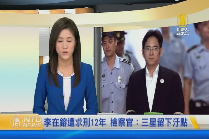 【新唐人亞太台 2017 年 12 月 28 日訊】針對南韓三星少主李在鎔行賄案,二審昨天開庭, 檢方要求將李在鎔的刑期由5年加重到12年。指出李在鎔非法贊助前總統閨蜜崔順實,卻辯稱是回饋社會,表示本案是為了繼承企業經營權,行賄總統及閨蜜的官商勾結案件,檢察官發表重話說,李在鎔的罪行,讓三星留下永遠無法洗刷的汙點。