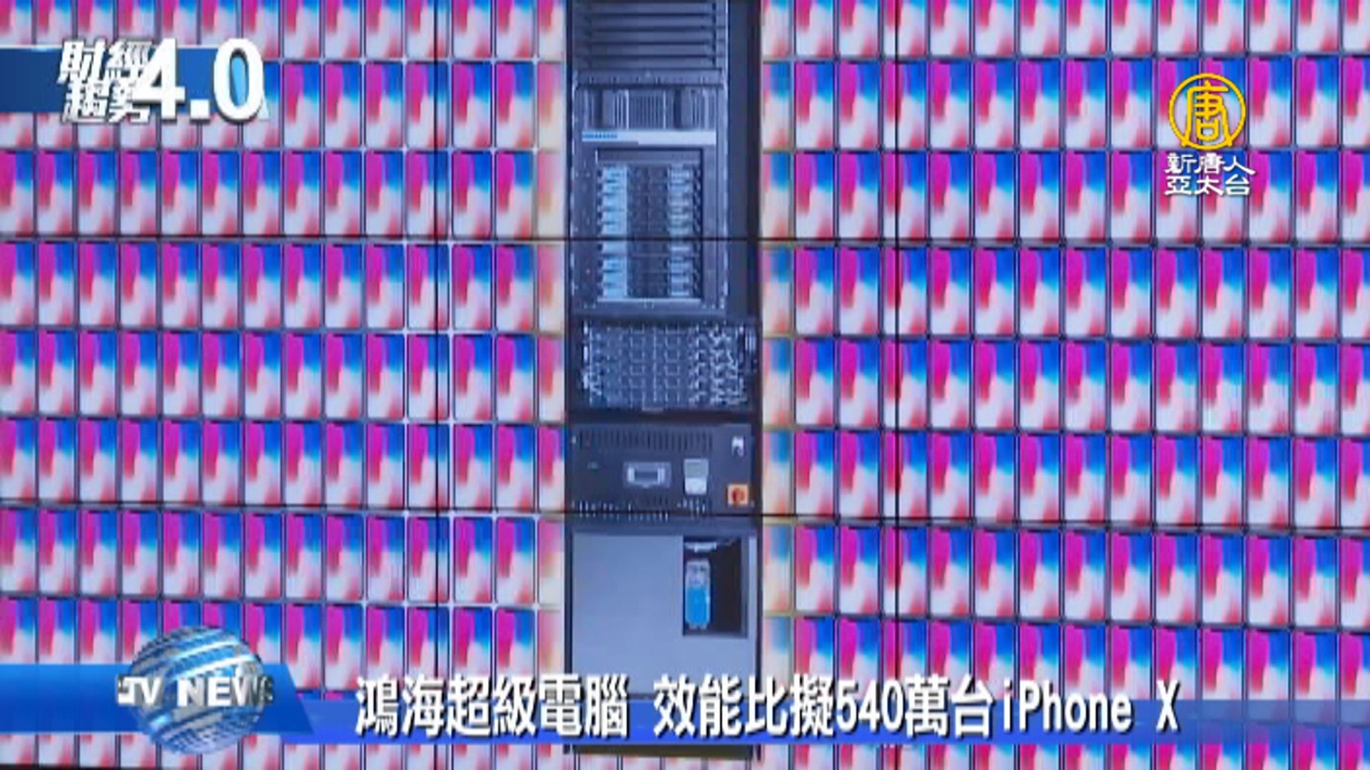 【新唐人亞太台 2017 年 12 月 30 日訊】關鍵時刻,帶您迅速掌握潮流趨勢,歡迎您收看財經趨勢4.0,我是趙庭譽。 先前科技部攜手NVIDIA,打造AI超級電腦,而鴻海集團本周亮相,第一個由民間商轉的超級電腦系統(HPC),效能相當於,540萬台iPhone X,並且鎖定精準醫療、體育賽事、影音娛樂三大應用,成為鴻海集團8K+5G生態圈布局發展的關鍵一步。