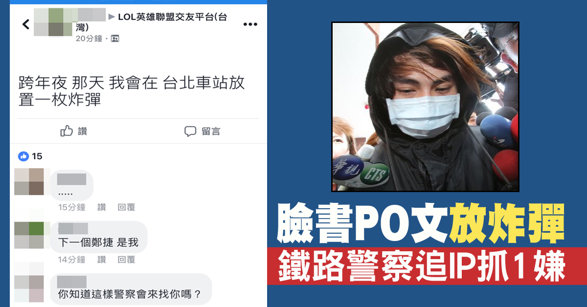 臉書PO文放炸彈 鐵路警察追IP抓1嫌