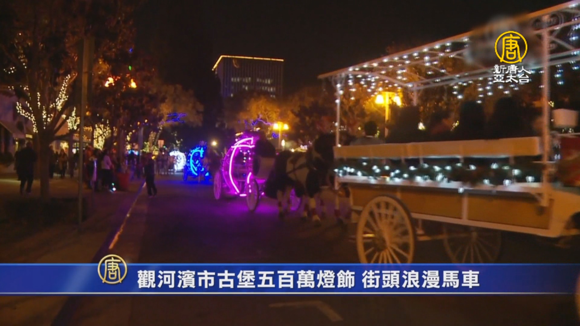 觀河濱市古堡五百萬燈飾 街頭浪漫馬車
