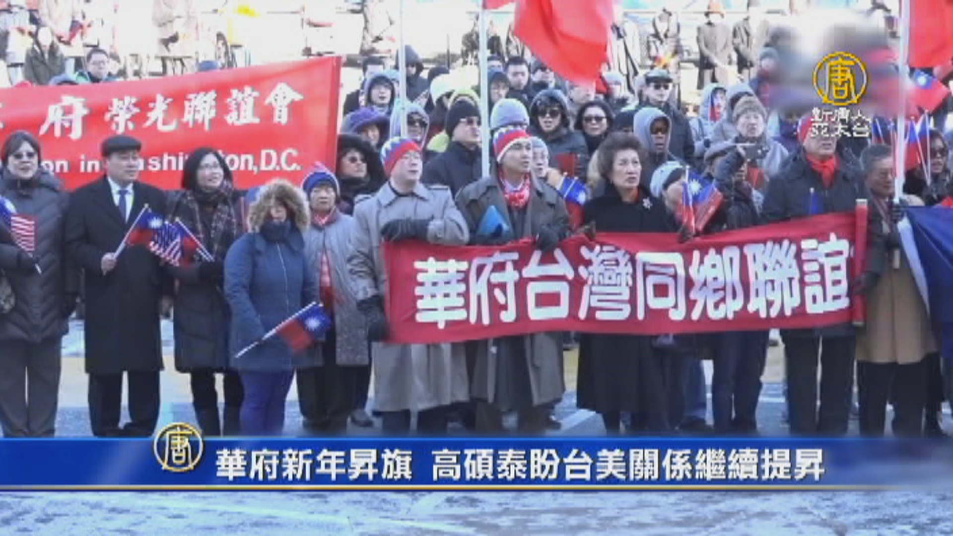 【新唐人亞太台 2018 年 01 月 02 日訊】2018年的第一天,美國首都華盛頓的僑學界頂著酷寒,舉行新年升旗儀式,看好接下來的台美關係。