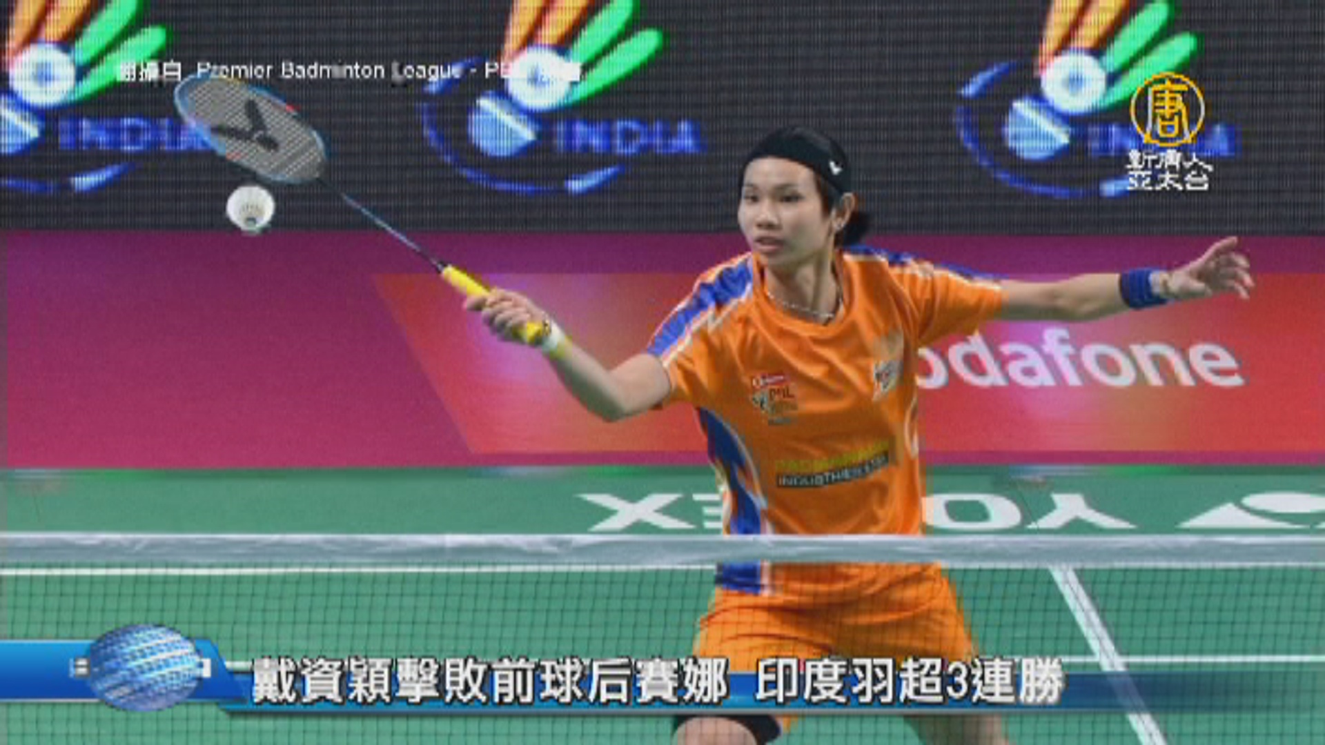 【新唐人亞太台 2018 年 01 月 03 日訊】「世界球后」戴資穎,短期加盟印度羽球超級聯賽,昨天以15比5、15比14,直落2擊退前球后賽娜,不過她在第二局後段發生2次未過網的發球失誤,所幸最終以巧妙的反手拍短球 終結比賽,拿下三連勝。