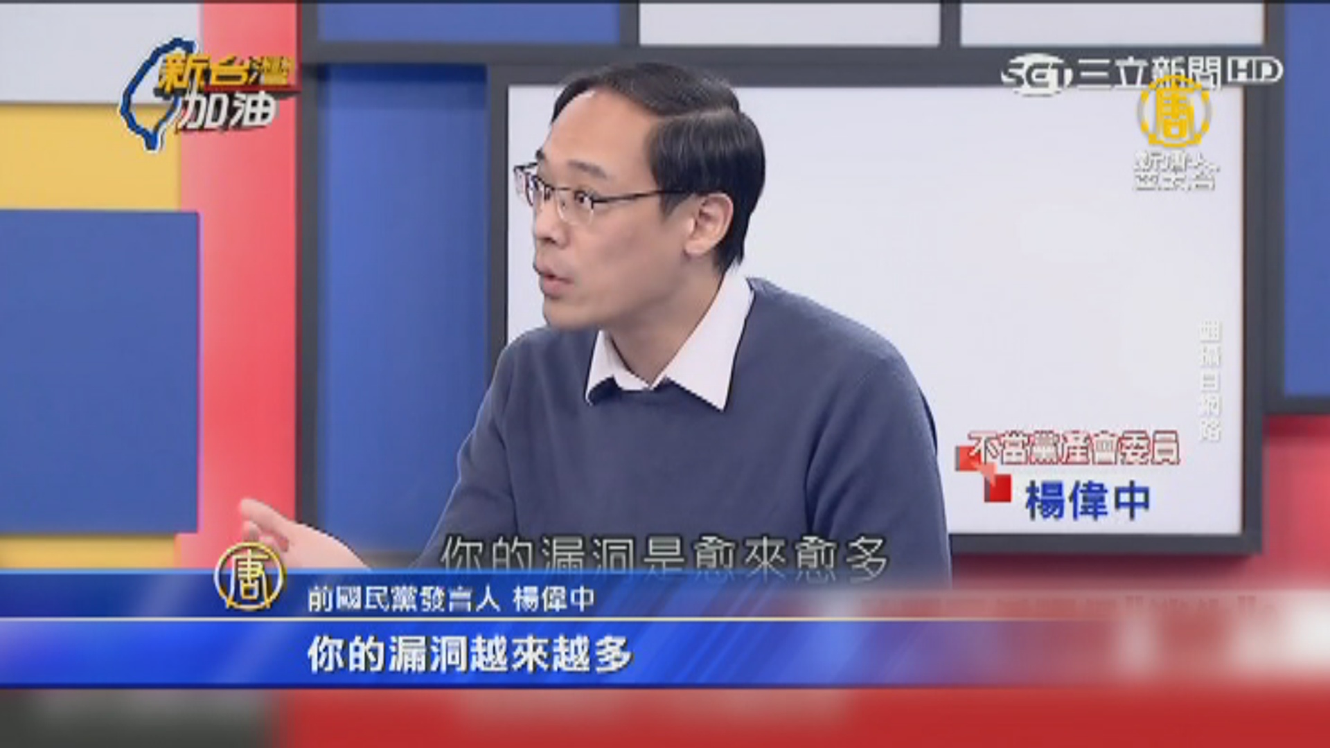 【新唐人亞太台 2018 年 01 月 04 日訊】王炳忠涉入陸生共諜案後,持續高調回擊,不過,前國民黨發言人楊偉中指出,王家父子說詞明顯兜不攏,他認為,漏洞越來越多。
