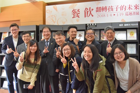【新唐人亞太台 2018 年 01 月 04 日訊】益品書屋在中台灣第一所餐旅管理系的東海大學,舉辦107年的第一場巡迴書展,期待400本的餐飲書籍,藉由學子們的熱情學習,讓知識翻轉他們的未來。本次巡迴書展「餐飲 翻轉孩子的未來」於107年1月4日至19日在東海大學圖書館展出,今日由王品集團創辦人戴勝益董事長、東海大學副校長王立志、圖書館長黃皇男一起為書展揭序。