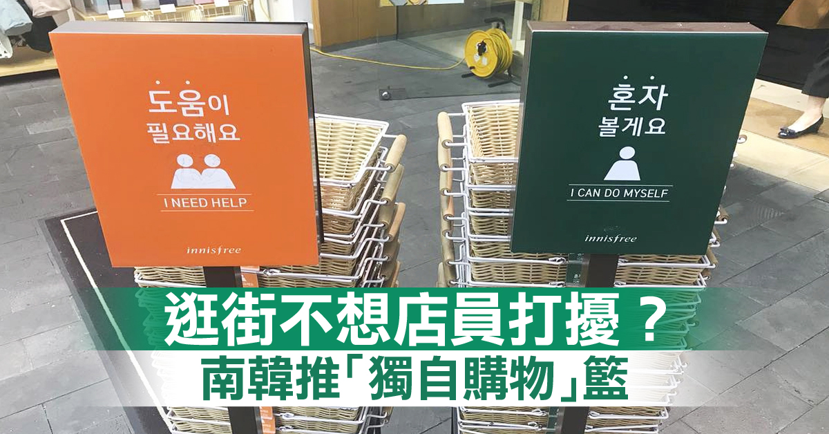 聽到民眾心聲,南韓就有一家化妝品店,提供顧客兩種購物籃,只要拿起掛有「我要獨自購物」標示的籃子,消費者就能靜靜的獨自購物。
