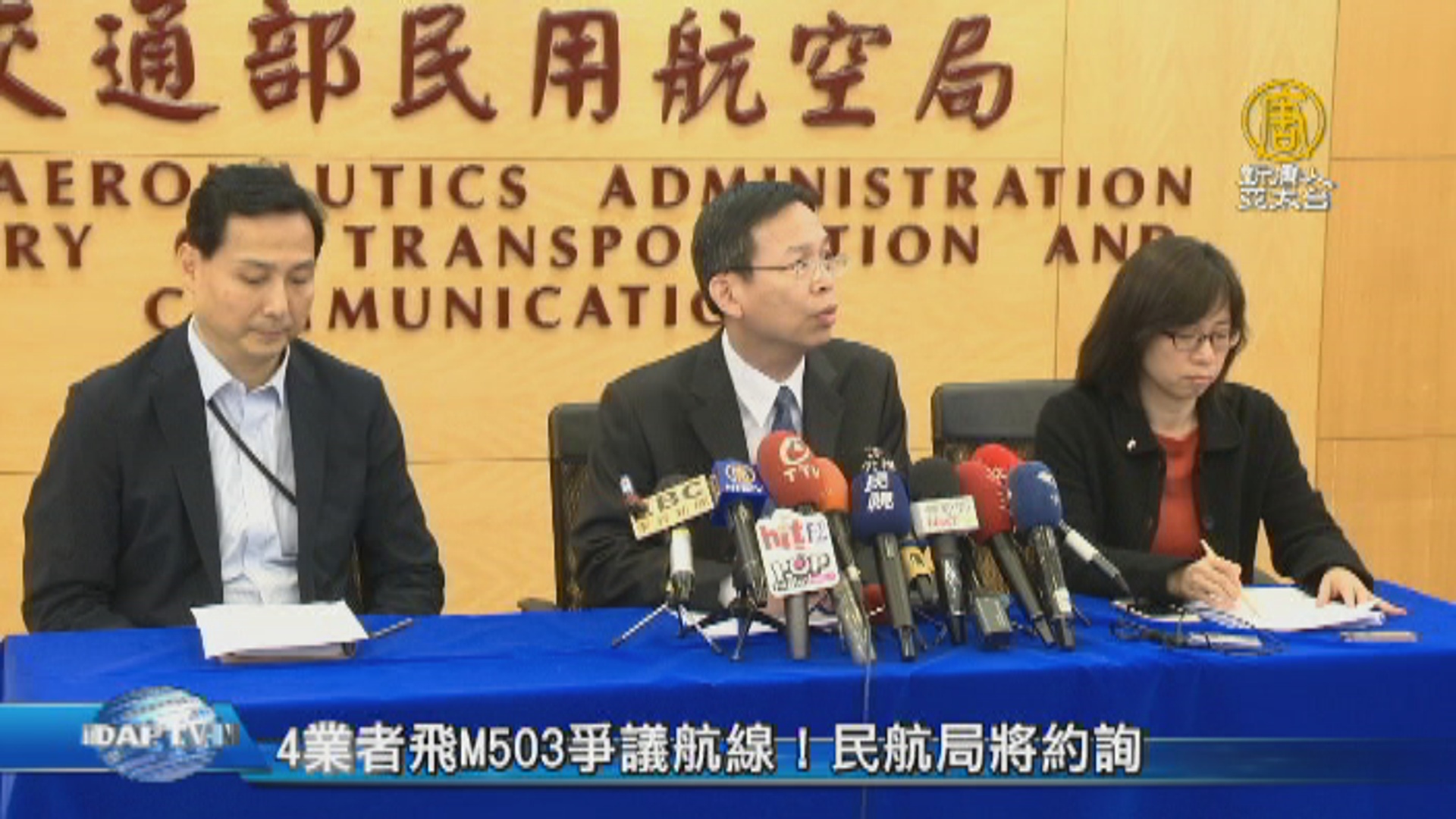 【新唐人亞太台 2018 年 01 月 05 日訊】焦點話題來看到,中共片面宣布啟用M503等爭議航線,陸委會昨天大動作表示,這是片面改變台海現狀,包裹政治軍事擴張意圖。今天,民航局上午召開記者會,宣佈昨天有四家航空業者使用爭議航路,將會進行約詢。