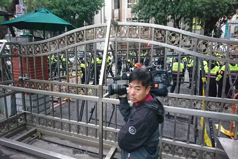 目前議場一樓有駐衛警「以院會已散會為由」進行進出管制,要求所有媒體只進不出;時力助理陳為廷稍早一度想進入議場2樓,也遭到阻擋。