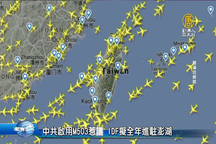 【新唐人亞太台 2018 年 01 月 06 日訊】中共民航局日前突然宣佈,啟用M503等爭議航線,被指責是影響飛安、片面改變台海現狀; 對此,台灣民航局已經對航空業者進行約詢,但今天截至下午四點,仍有11架次航班,使用爭議航線。另外,平面媒體報導,軍方慎重研議,將每年夏季部署澎湖的IDF戰機中隊,調整為全年常態部署,以爭取空防預警時間。