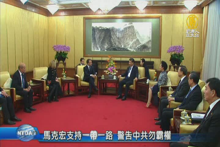 【新唐人亞太台 2018 年 01 月 09 日訊】再來看到,法國總統馬克宏,任內首次訪問中國。馬克宏首站落腳絲路起點,西安,和夫人一起參觀兵馬俑。昨天,他與中國領導人習近平會面,馬克宏表示,歐洲應該參與「一帶一路」計畫,但他也對中共提出警告,表示:這不可以為新霸權鋪路,所經過的國家都成了附庸。馬克宏強調,多邊主義意味平衡的合作。另外,法國方希望,「重新平衡」中法雙方貿易,解決300億歐元的貿易逆差。
