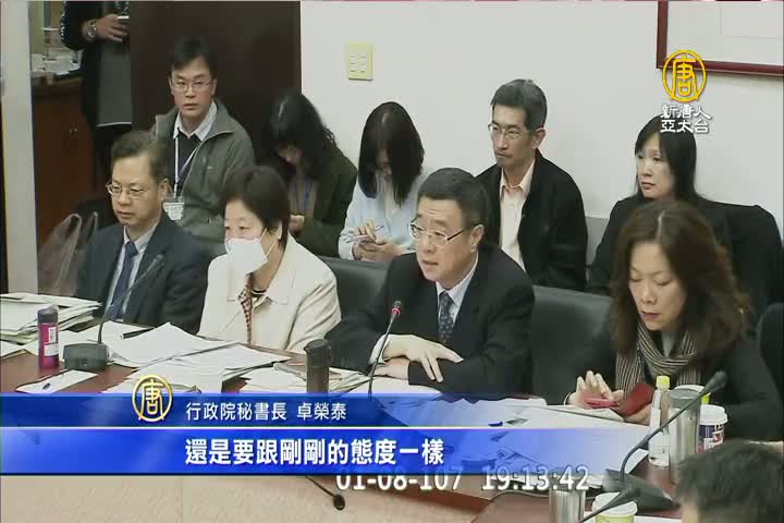 【新唐人亞太台 2018 年 01 月 09 日訊】好,立法院審查勞基法,上午持續協商,國民黨祭出案海戰術,提220案一塊表決。昨天(8日)退出協商的時代力量仍舊缺席,民進黨團總召柯建銘說重話,就算進行36小時不斷電表決,也奉陪到底。