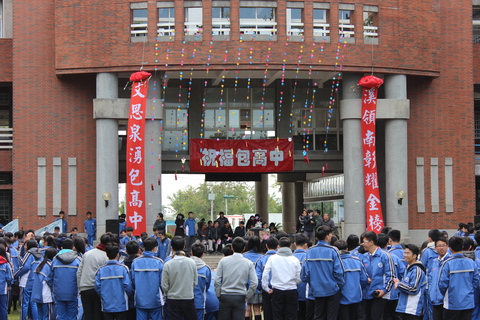 【新唐人亞太台 2018 年 01 月 11 日訊】學測、統測考期將近,為祝福考生金榜題名,溪湖高中今天(11日)舉辦「祝福包高中」活動,家長會精心準備了包子、蛋糕與粽子,校長楊豪森則朗誦《包高中詞》,祝福高三學子都能包準高分錄取。