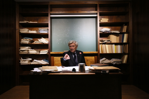 【愛因斯坦特展】愛因斯坦文獻庫學術主任坐在愛因斯坦辦公桌前。(圖:主辦單位聯合數位文創提供)