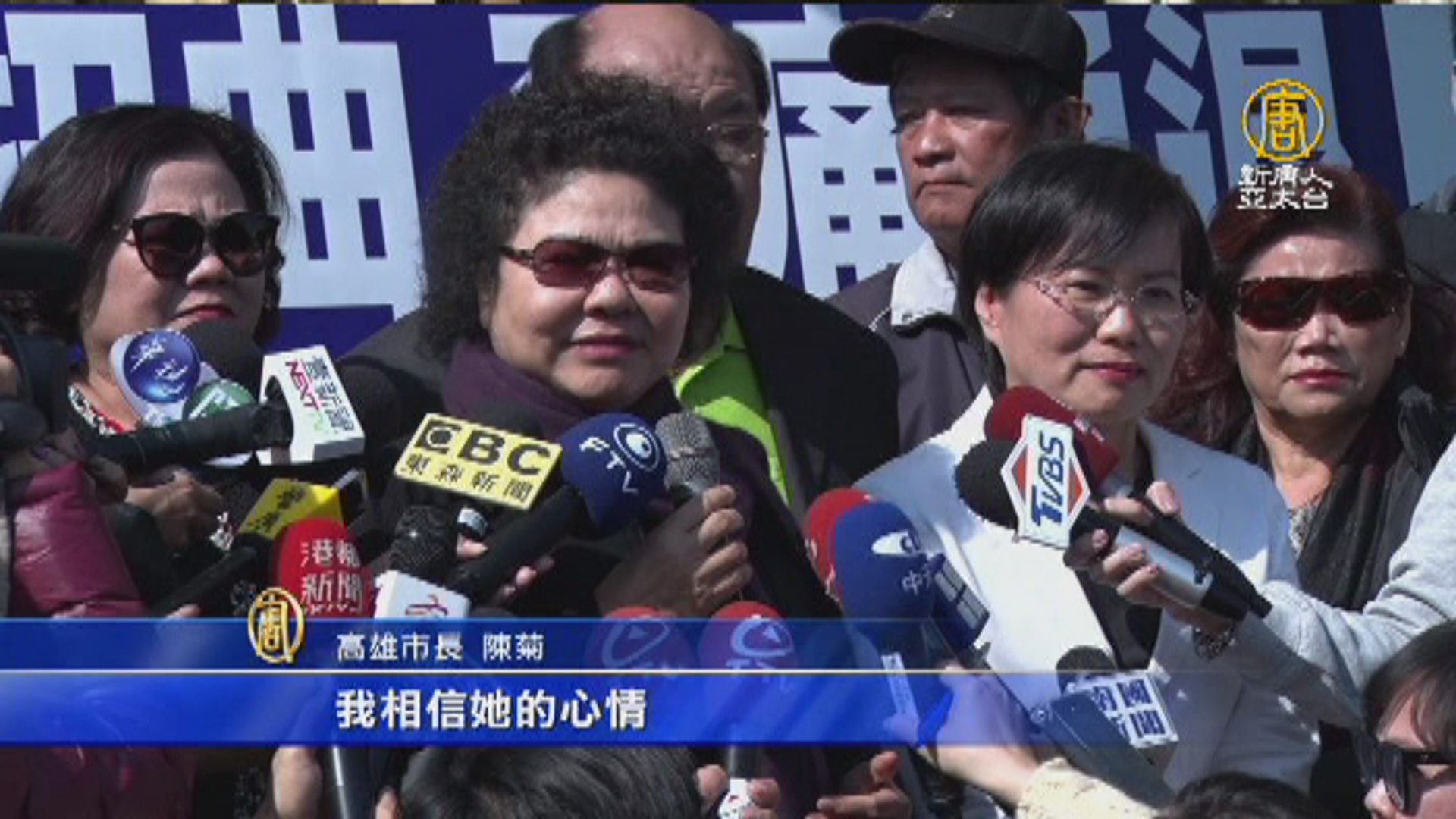 高雄市長 陳菊:「我佩服,我也認同,我也同意她的決定,這是千古艱難,不過她這樣的決定,我相信她的心情,海闊天空,雲淡風清,我想有時候退下就是下個階段,進步、提升。」