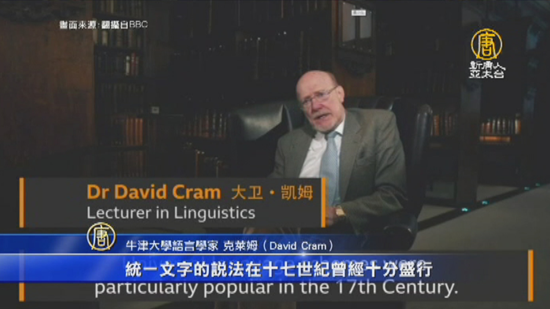 牛津大學語言學家 克萊姆(David Cram):「統一文字的說法在十七世紀曾經十分盛行,人們曾經假設語言的起源,在神學上來自於伊甸園,所以整個世界曾經只說一種語言。像是中文,以及它的書寫系統,可以有這個資格,因為它的符號與所象徵的特殊關係。」