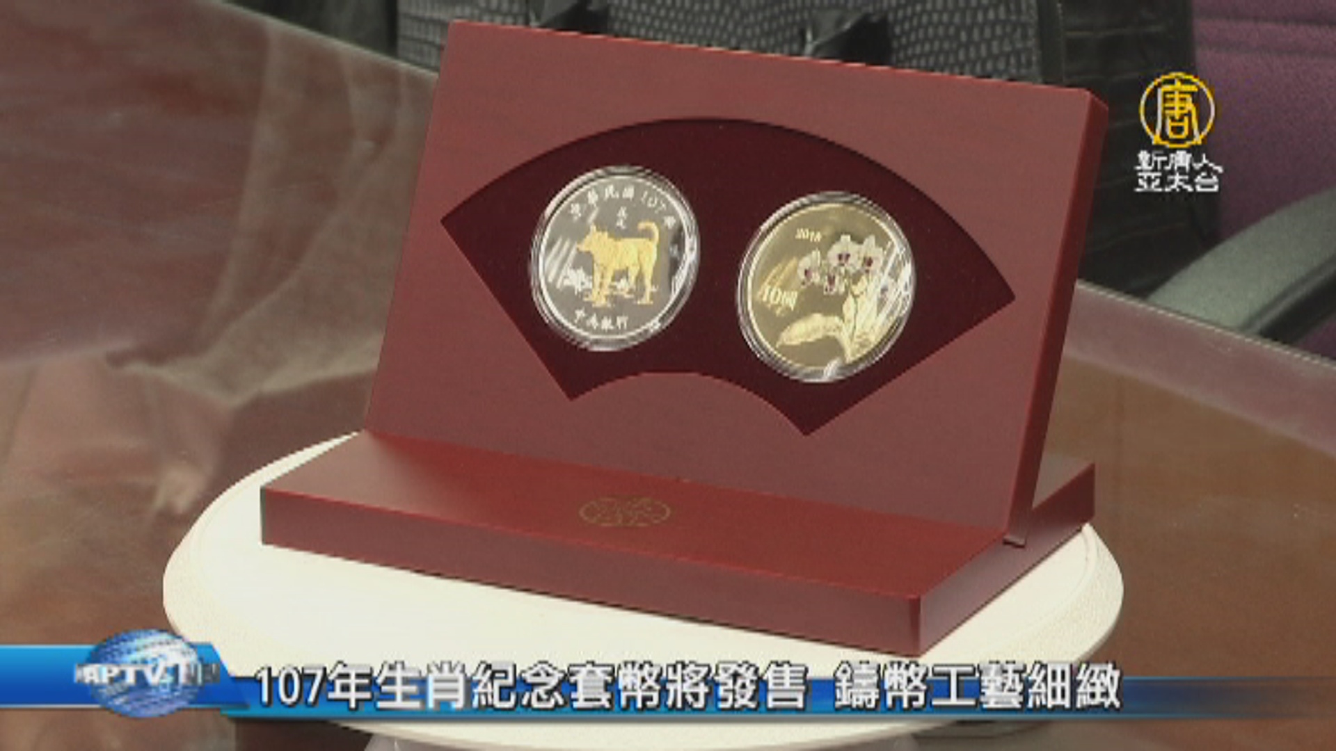 【新唐人亞太台 2018 年 01 月 16 日訊】央行今天宣布下星期,將在台灣銀行各分行,開賣「戊戌狗年生肖紀念套幣」,限量十二萬套。央行說,今年的紀念套幣以先進技術鑄造,紀念幣的圖樣花紋都具有象徵意義。