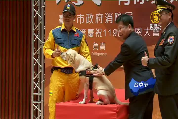 消防人員無私奉獻,不論眼前多驚險多困難,一樣無所畏懼,連4隻搜救犬,林佳龍親自授階一線四星」的小隊長,另有1隻通過IRO國際認證也掛上「一線二星」階級,成為消防人員的堅強後盾。