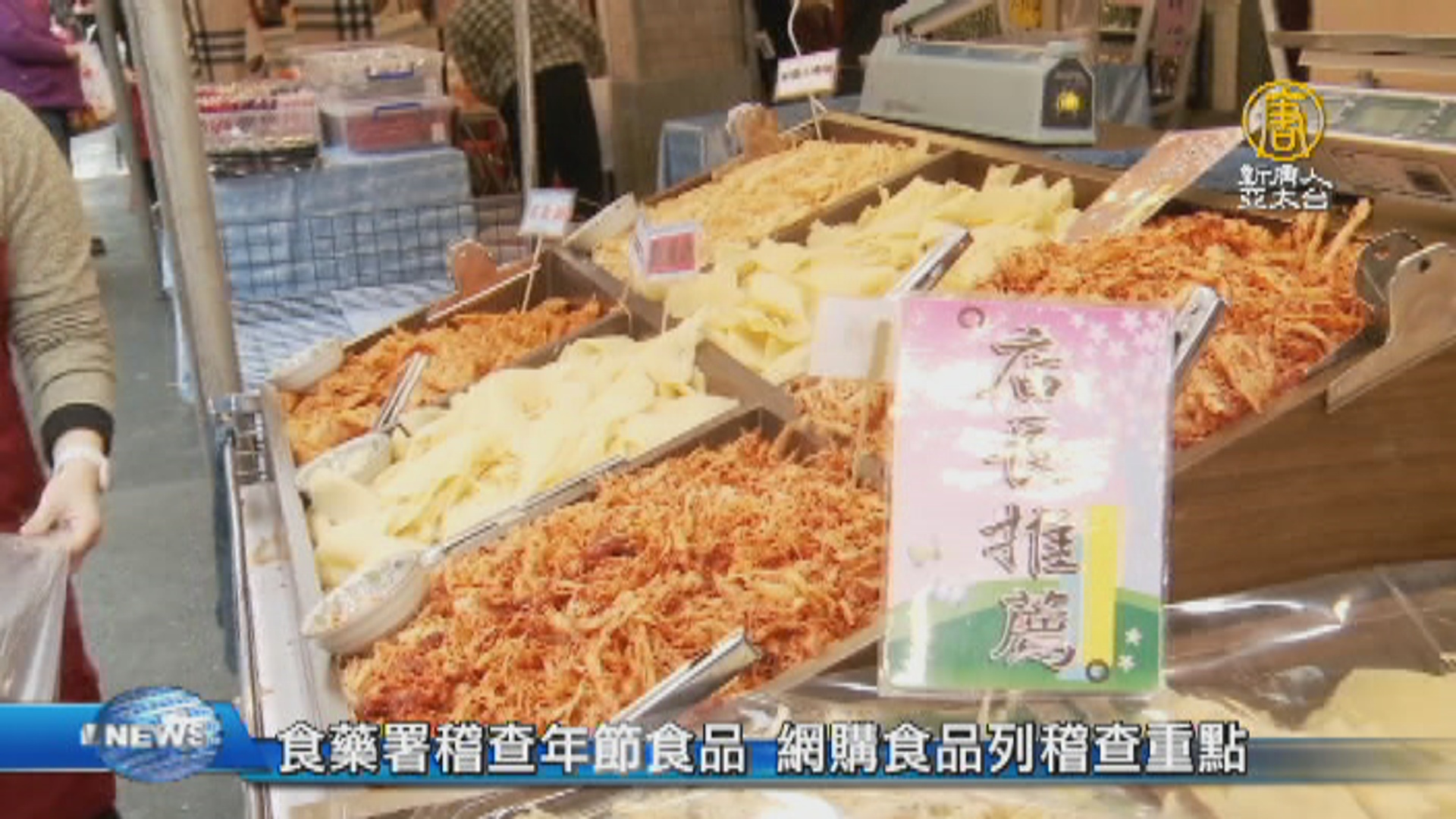 【新唐人亞太台 2018 年 01 月 17 日訊】食藥署從去年12月起,展開年節食品衛生稽查。從一般年貨,餅乾飲料,到冷凍年菜,都在稽查範圍,盼能透過落食食安五環,保障消費者食安問題。另外,網購宅經濟興起,這次也將網購食品列入重點執行。
