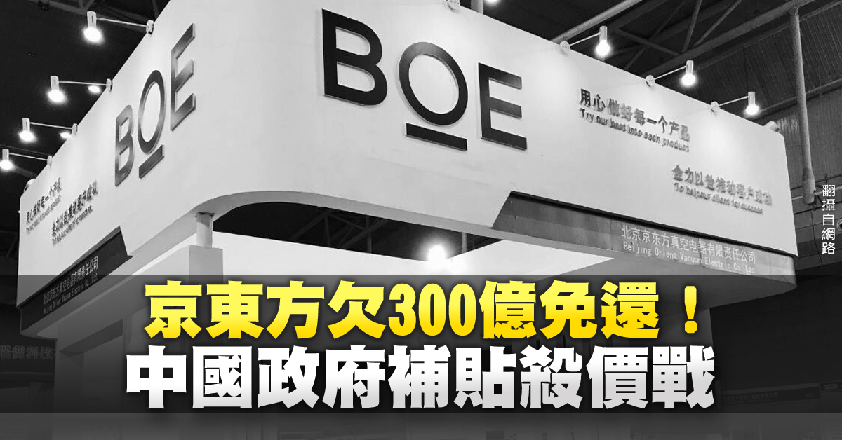 中國面板業龍頭京東方,獲地方當局豁免了約新台幣300億元的貸款,加上有中國內需市場支撐,台灣面板產量兩年前被中國超越,台廠長期在不公平競賽中打硬仗。