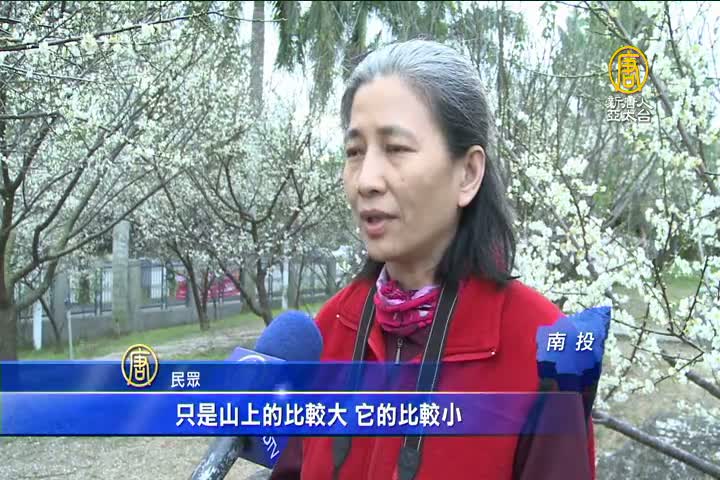 南投縣政府警察局公共關係科 盧俊明:「這片梅花園是從警察局蓋好之後,在民國93年就種植到現在,數量大概有60多棵,近幾年來,今年是最盛開的一次。」