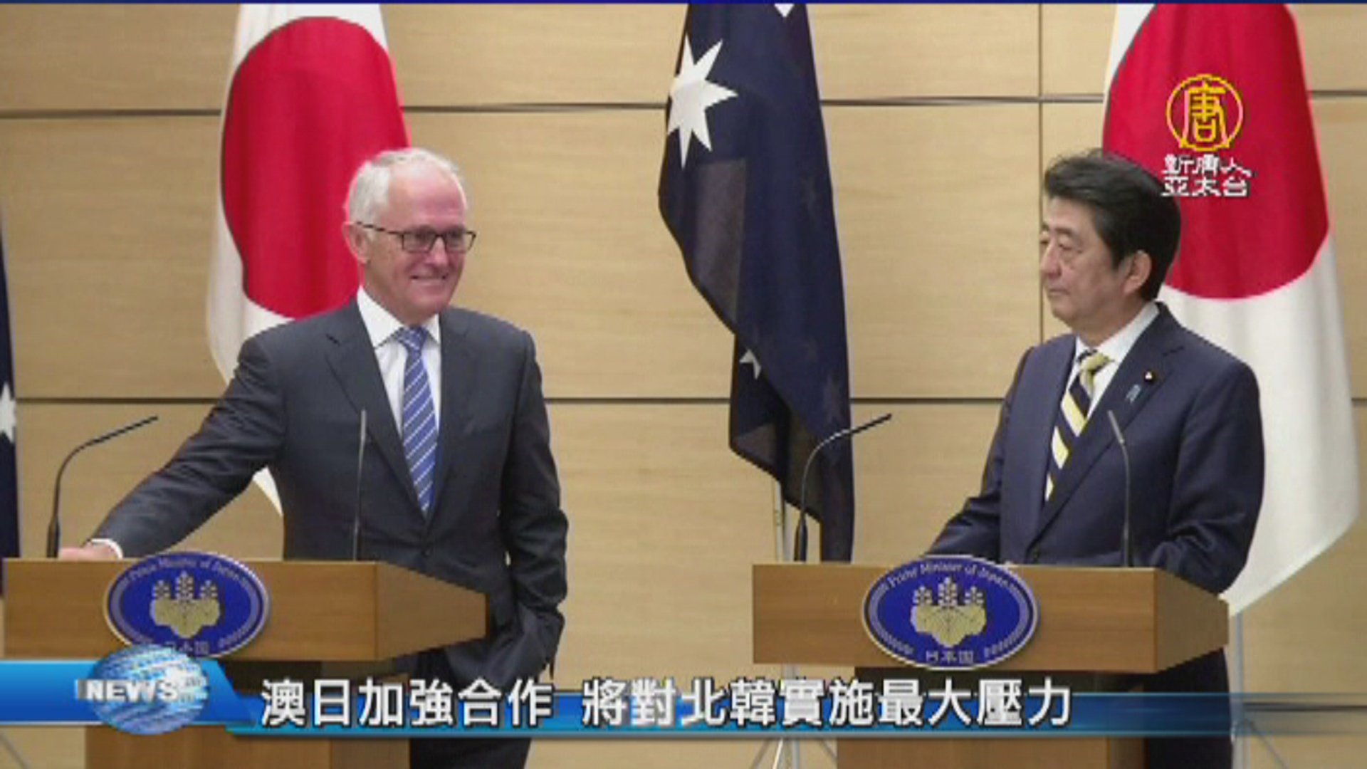 【新唐人亞太台 2018 年 01 月 19 日訊】歡迎回來。澳大利亞總理滕博爾訪問日本,週四,他在東京會晤日本首相安倍晉三,並表示,兩國要加強安保、防衛領域的合作。為了因應朝鮮半島的緊張局勢,日本和澳洲,將尋求強化軍事合作,希望洽簽新的國防協議,維持亞太地區和平。