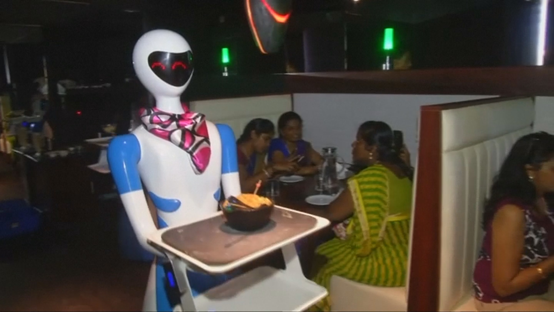 【新唐人亞太台 2018 年 01 月 19 日訊】全印度第一間雇用機器人來上菜的餐廳正式開張了!上門的客人可以透過平板點餐,然後機器人會從廚房把熱騰騰的餐點送到位置上,上菜快速,作業順暢,讓每個人都印象深刻。機器人上菜的特殊畫面,也讓大家爭相拿出手機拍照留念。