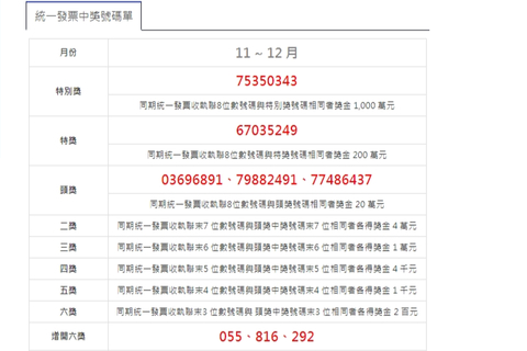 2022-09-25 17:45:22111年7、8月統一發票中獎號碼今天出爐,7-ELEVEN統一超商本期開出3組1000萬特別獎,分別是1人在新北市新店區正民門市僅花費新台幣49元購買民生用品,1人在台中市大雅區晞寶門市花49元買飲料,以及1人在台東縣台東市東捷門市花300元買數位商品,就抱回千萬大獎。