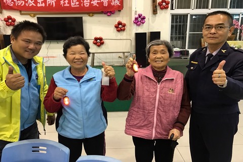 屏東分局推「護老專案」,主動為長者配戴行人亮光手環。(屏東警分局提供)