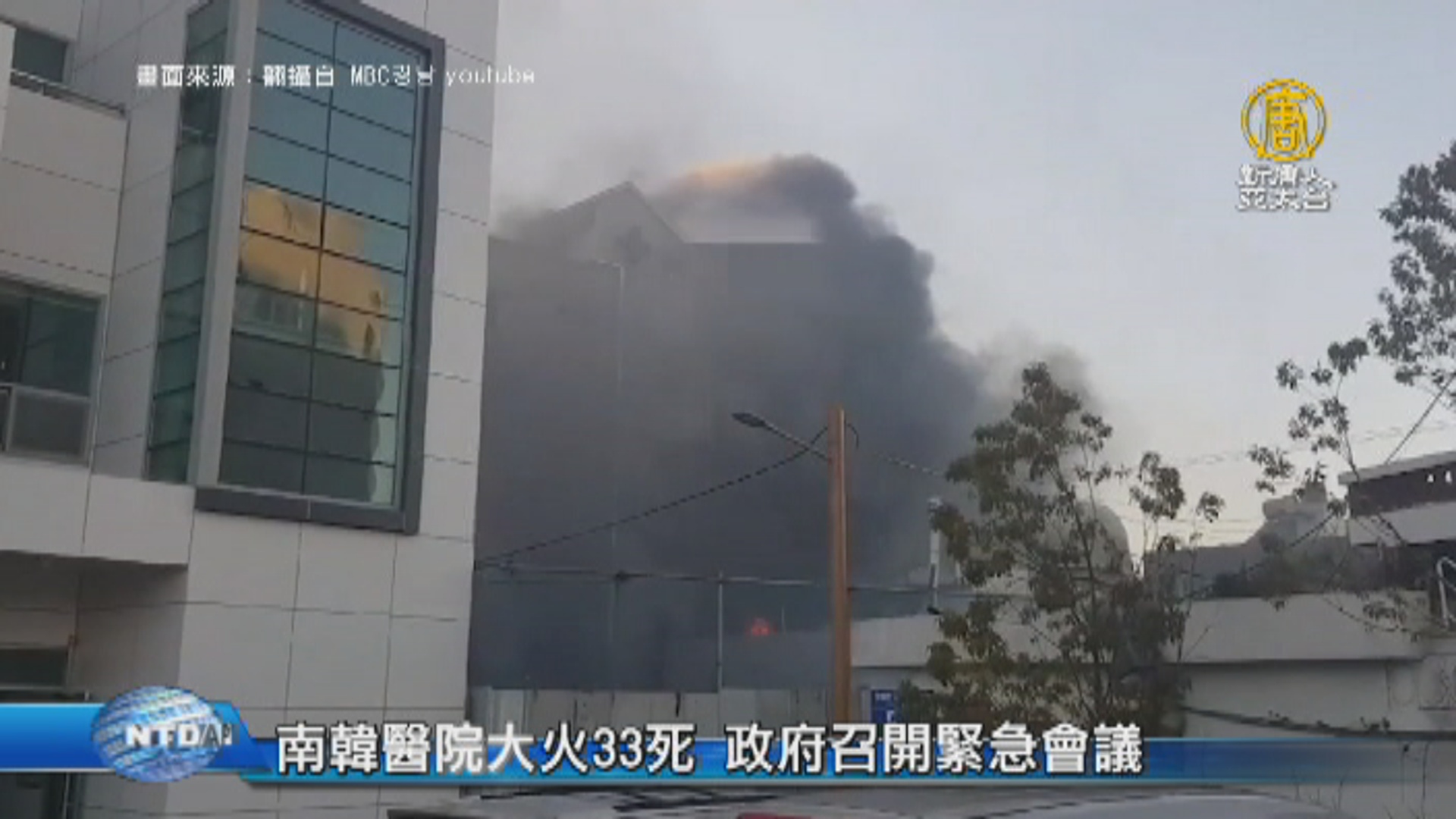 【新唐人亞太台 2018 年 01 月 26 日訊】午報頭條先帶您關心國際消息,南韓南部密陽市的世宗醫院,今天上午發生火警,目前已知有33人死亡,77人受傷, 死傷者主要是長期病症的年長患者。當局說,起火點是在急症室,當時醫院內有大約近二百名病人,因為濃煙密布,影響救援。消防員用了一小時四十分鐘,才將大火撲滅。總統文在寅指示召開緊急會議,當局正調查起火原因。