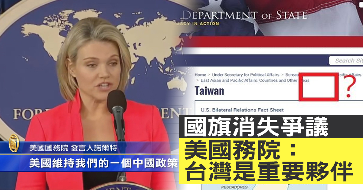 國旗消失爭議 美國務院:台灣是重要夥伴