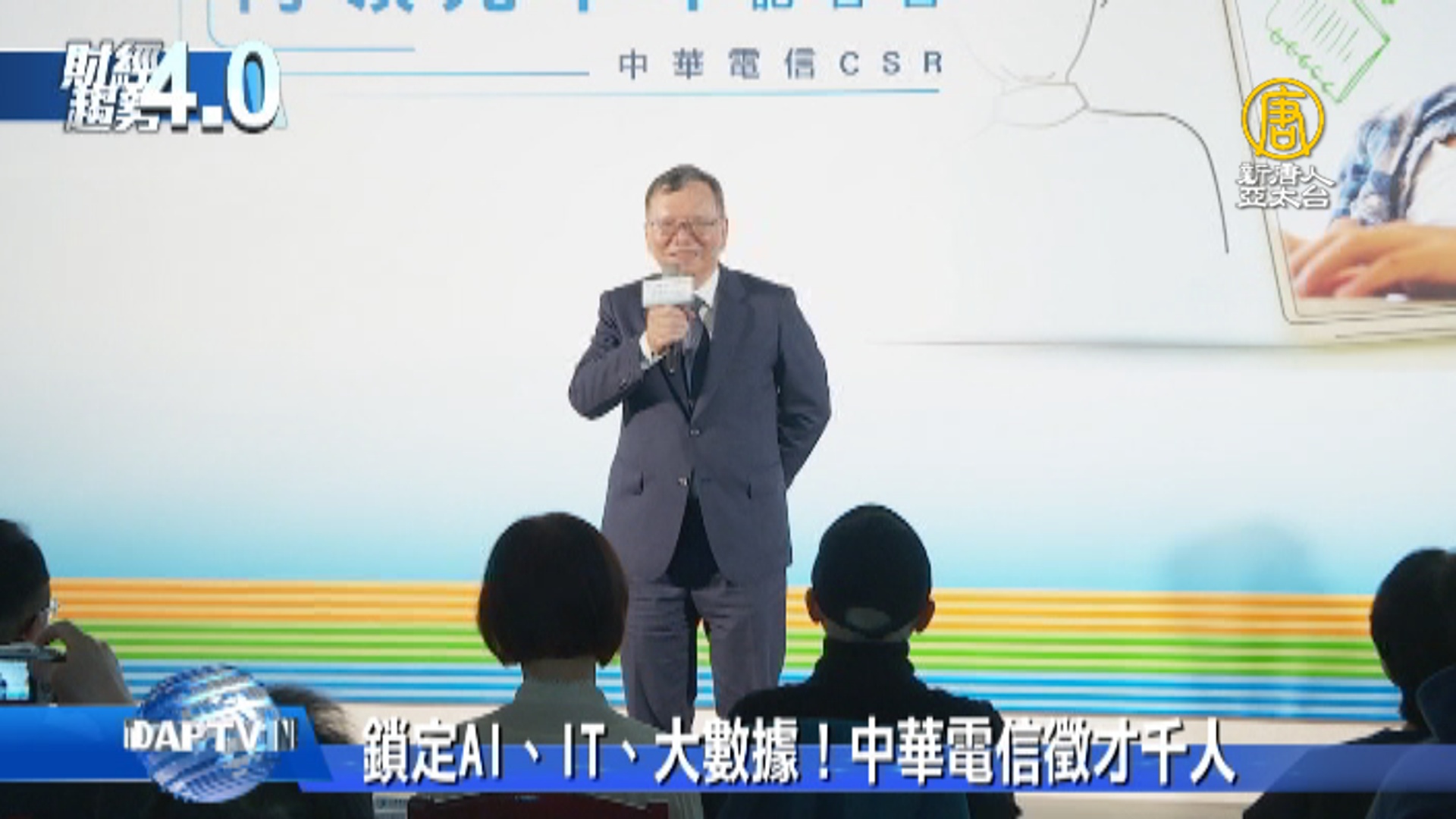 【新唐人亞太台 2018 年 01 月 26 日訊】繼續看到,中華電信本週有一場記者會,展示十年來的企業社會責任成果,而中華電信未來幾年,將面臨員工退休潮,董事長鄭優說,今年徵才主要鎖定資訊科技、人工智慧、大數據,以及資安領域。