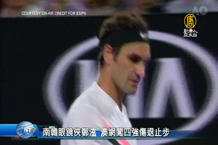 【新唐人亞太台 2018 年 01 月 27 日訊】今年澳網除了謝淑薇之外,還有一位令人驚豔的選手,他是南韓網球新秀鄭泫。克服視力問題,不僅擊敗勁敵喬科維奇,還打敗了世界排名第4的茲維列夫,一路過關斬將闖進四強,成為本屆澳網超級黑馬,也為南韓網球史,締造亮眼新紀錄。
