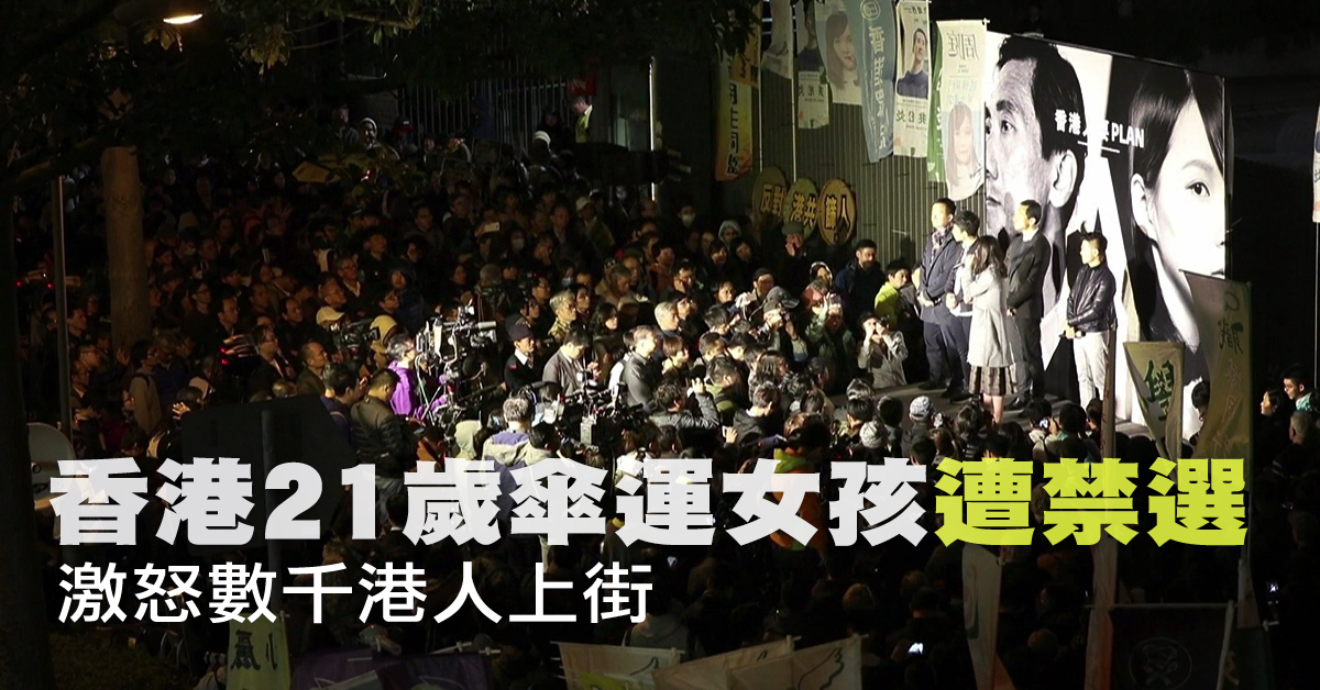港21歲傘運女孩遭禁選 激怒數千港人上街