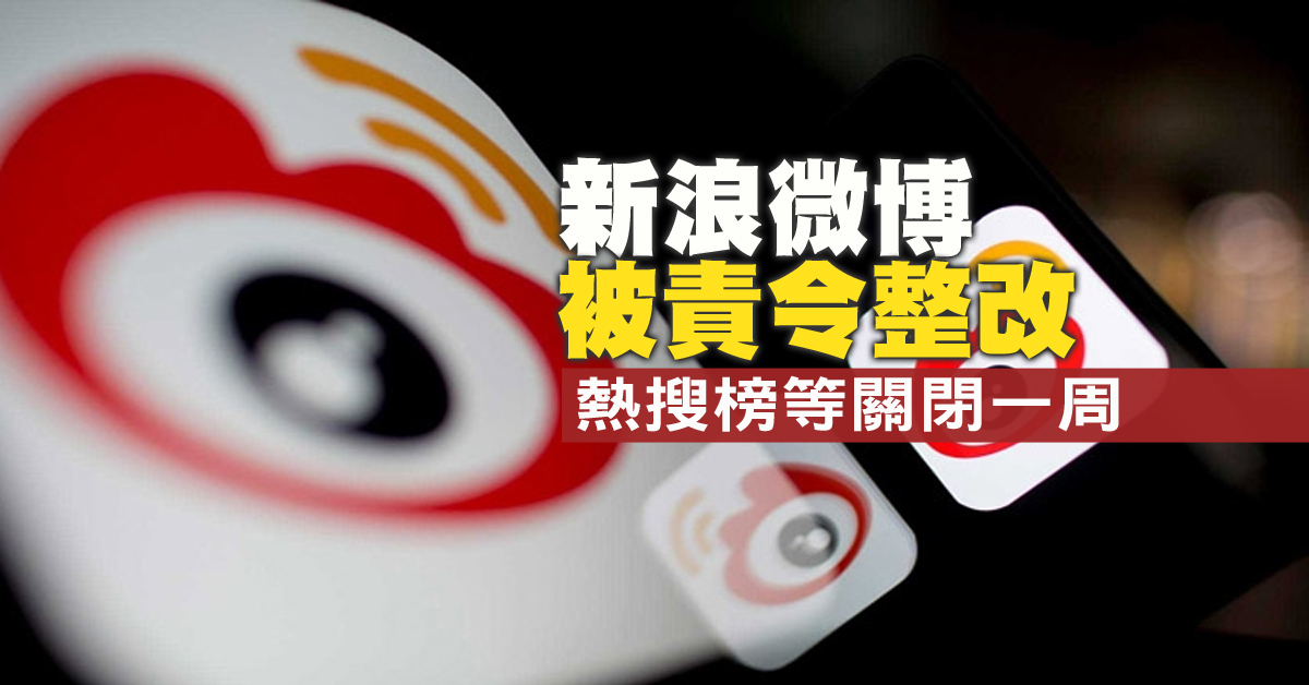 新浪微博負責人表示,將嚴格落實網信部門管理要求,對問題突出的熱搜榜、熱門話題榜、微博問答功能、熱門微博榜明星和情感版塊、廣場頭條欄目情感版塊暫時下線一周進行整改。