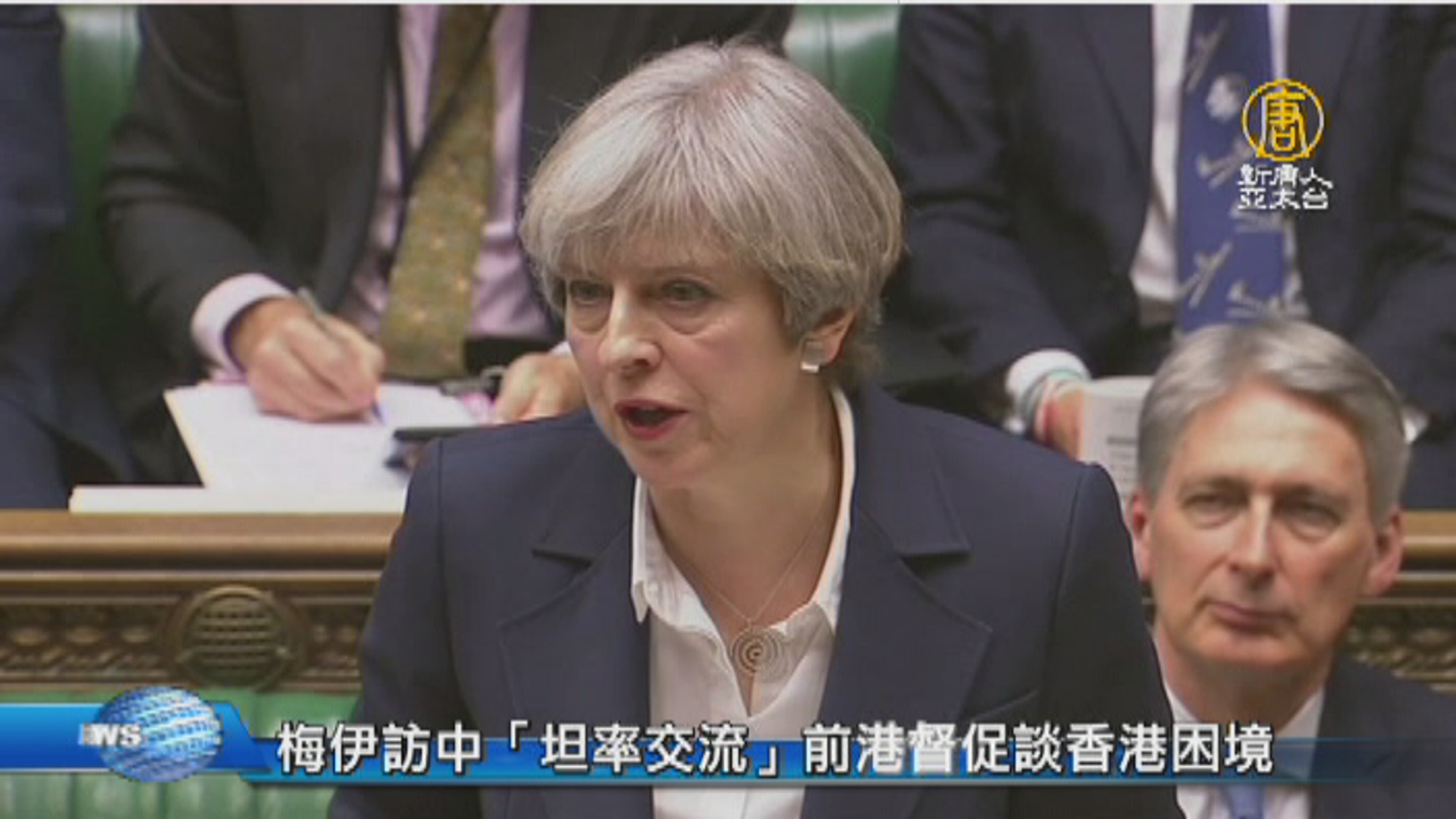 【新唐人亞太台 2018 年 01 月 31 日訊】再來關心,英國首相梅伊,今天將啟動任內首次訪問中國,3天的行程預料聚焦貿易問題。梅伊昨天發表聲明說,會加強雙邊關係,就不同議題與中方坦率討論。香港末代總督彭定康昨天則敦促梅伊,對香港政治處境表達關切。強調中英關係重要,但英國不能犧牲對香港的責任作代價。