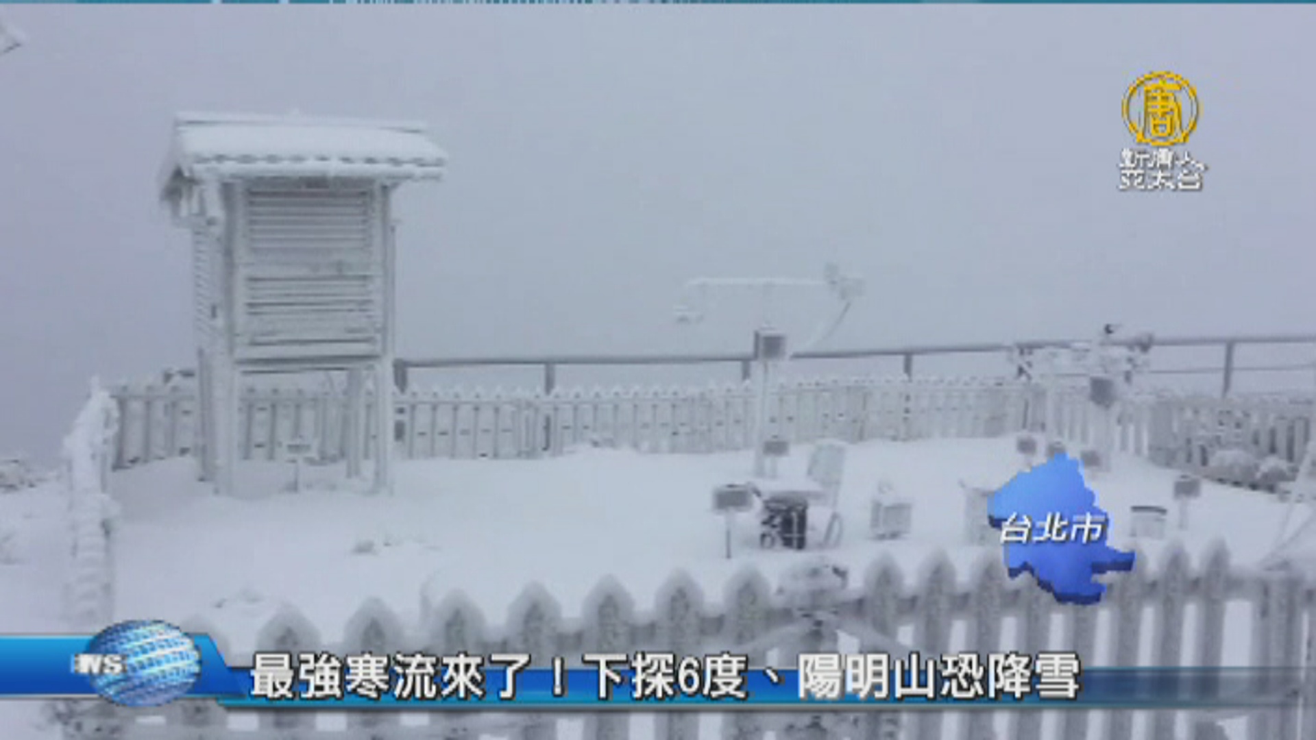 【新唐人亞太台 2018 年 02 月 01 日訊】新聞一開始,來關心天氣,入冬以來最強寒流,週五(2日)晚上發威。氣象局預估北部最低溫下探7度,中部空曠地區可能剩6度,加上北部、東北部水氣豐沛,體感溫度更冷。雪線下降到就連1000公尺高的大屯、七星、拉拉山,也有機會降雪,預估全台急凍到下週三(7日)。