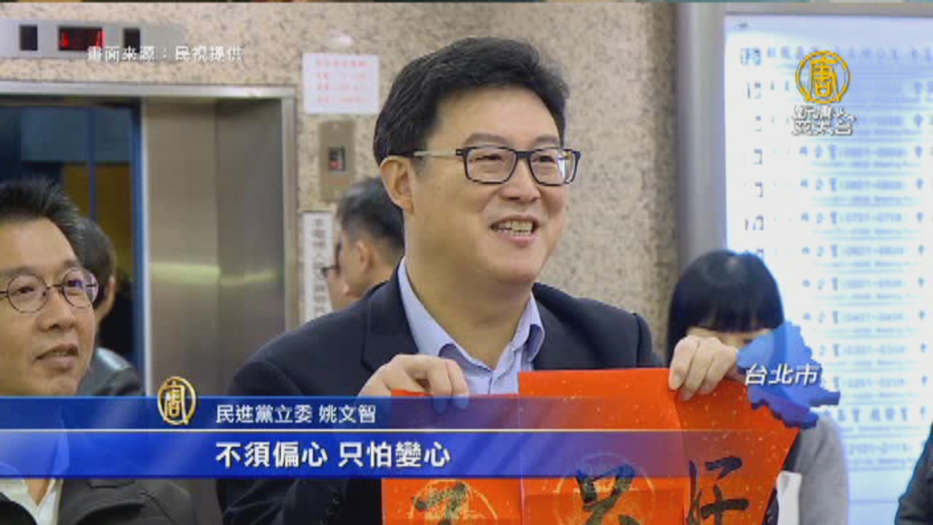【新唐人亞太台 2018 年 02 月 01 日訊】民進黨在首都之戰,到底會不會派出自家人馬?昨天晚上(31日),民進黨主席蔡英文在民進黨尾牙上,對姚文智說出,「我如果偏心,也一定是偏著你」,讓姚文智很開心,但台北市長柯文哲,在國外冷回,黨主席當然要這樣講。而姚文智今天(1日)在立法院,揮毫寫春聯,就寫下「不用偏心、只怕變心」,似乎在提醒黨中央。