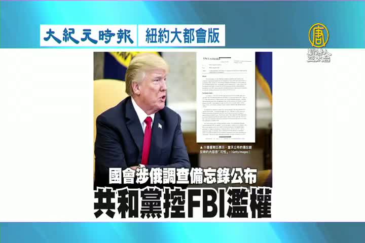 【新唐人亞太台 2018 年 02 月 05 日訊】接著看到大紀元時報紐約大都會版報導:國會公布通俄門爭議備忘錄,內容指出,聯邦調查局,在2016年選舉時濫權。